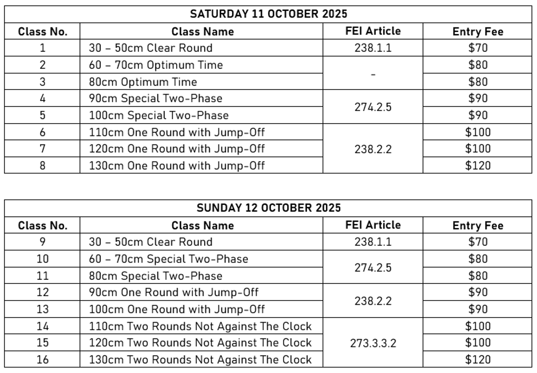 This competition is a National Equestrian Federation of Singapore (EFS)-sanctioned Interclub Show, organised under the following rules: