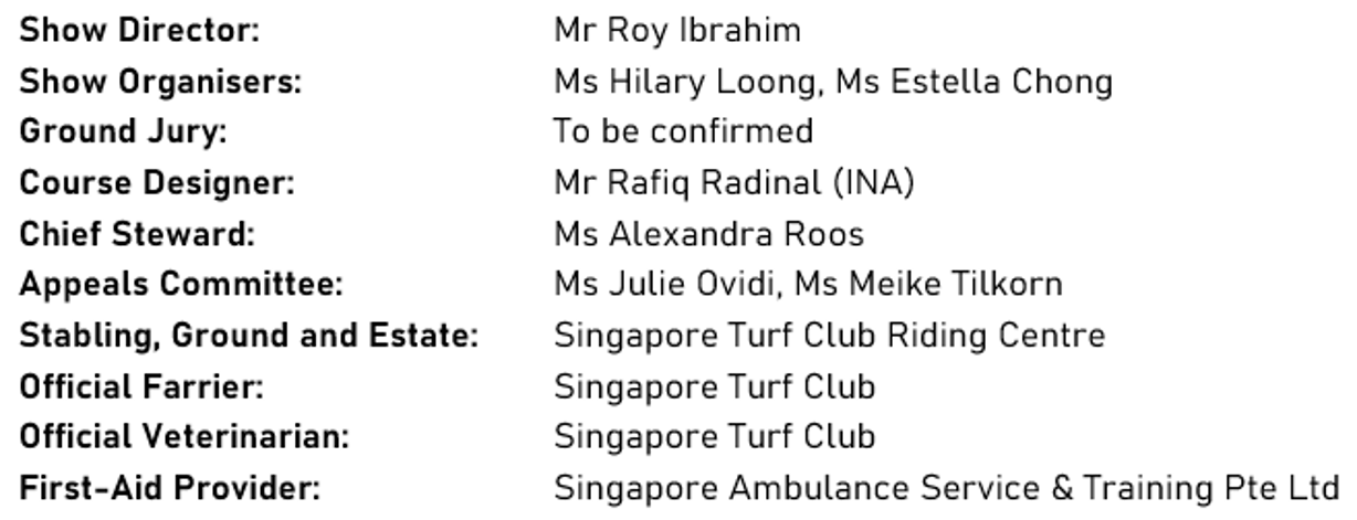 This competition is a National Equestrian Federation of Singapore (EFS)-sanctioned Interclub Show, organised under the following rules: